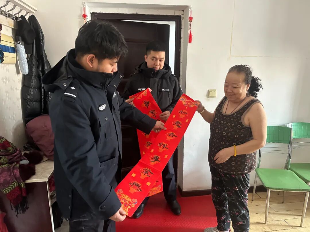 笔墨寄情,暖心致远。民警带着写好的春联和“福”字,走进辖区群众家中,将这份特殊的新春厚礼送到群众手中。每到一户,民警都与群众亲切交谈,详细询问他们的生活状况和实际需求,叮嘱大家注意冬季防火、防盗、防电信诈骗,做好防寒保暖,度过一个平安、祥和、欢乐的春节。接过墨迹未干、暖意融融的春联,群众脸上洋溢着幸福的笑容,纷纷表示,手写的春联比印刷的更有温度、更有年味,真切感受到了警民一家亲的温暖,感谢市警察协会送来的关怀与祝福。