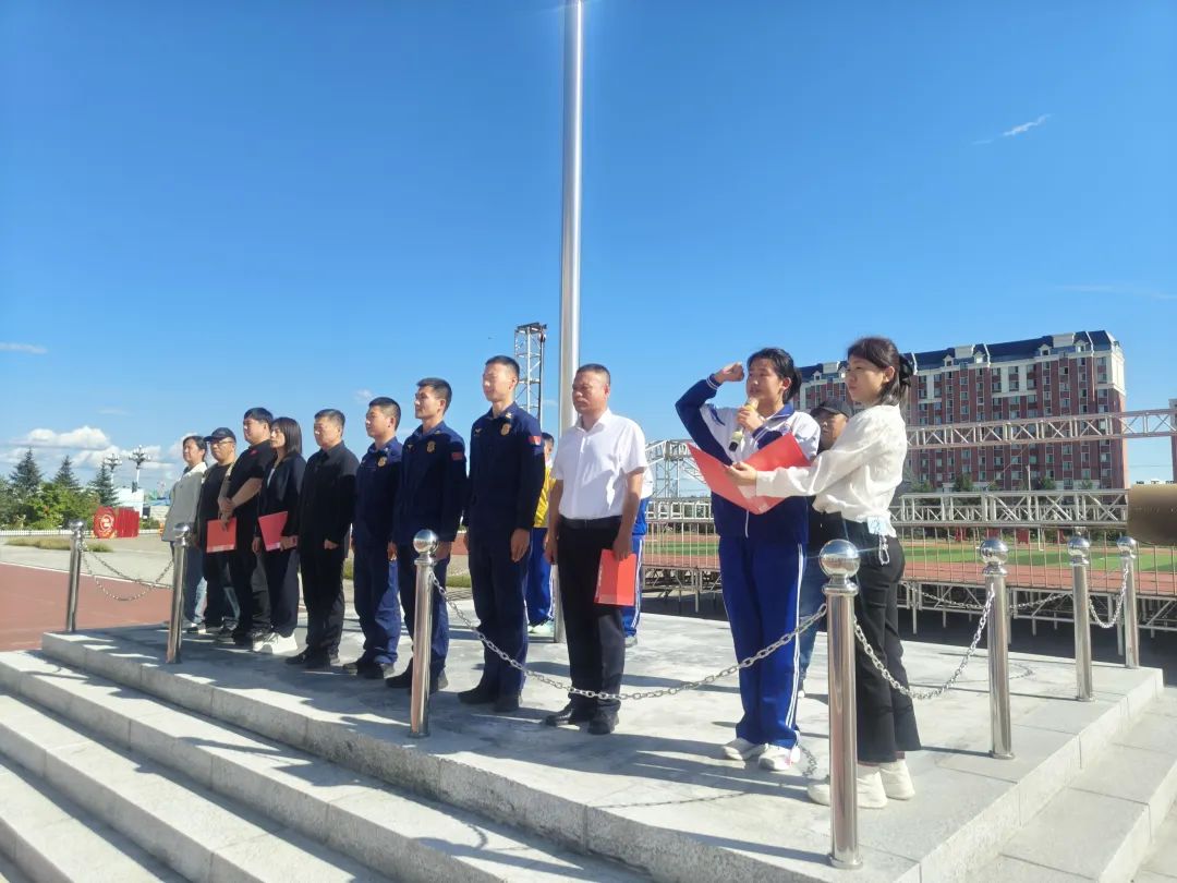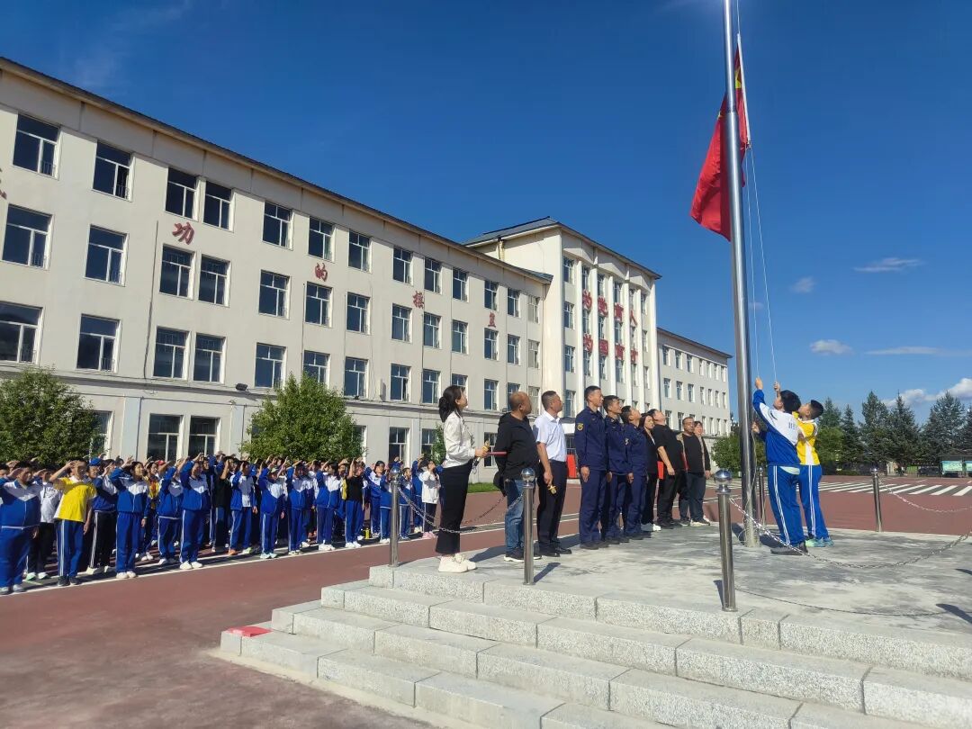 骄阳砺志,烈日铸魂。8月26日下午,漠河市育才学校迎来了一场意义非凡的成长启航礼——2025年七年级新生军训动员大会隆重举行。这不仅是一次体魄的锤炼,更是一次精神的洗礼,旨在培养初中新生熔铸钢铁意志,厚植家国情怀,为崭新的学习征程奠定坚实基石。漠河市育才学校领导班子成员,消防救援大队教官毕欣然、张玉、王宇航,中学教导处中层干部及七年级师生130余人参加此次动员大会。