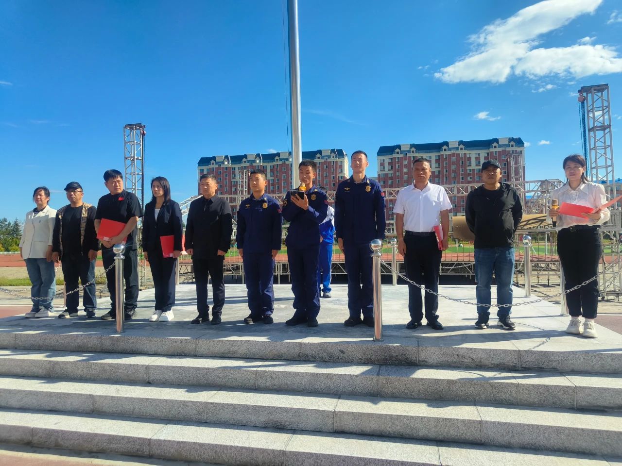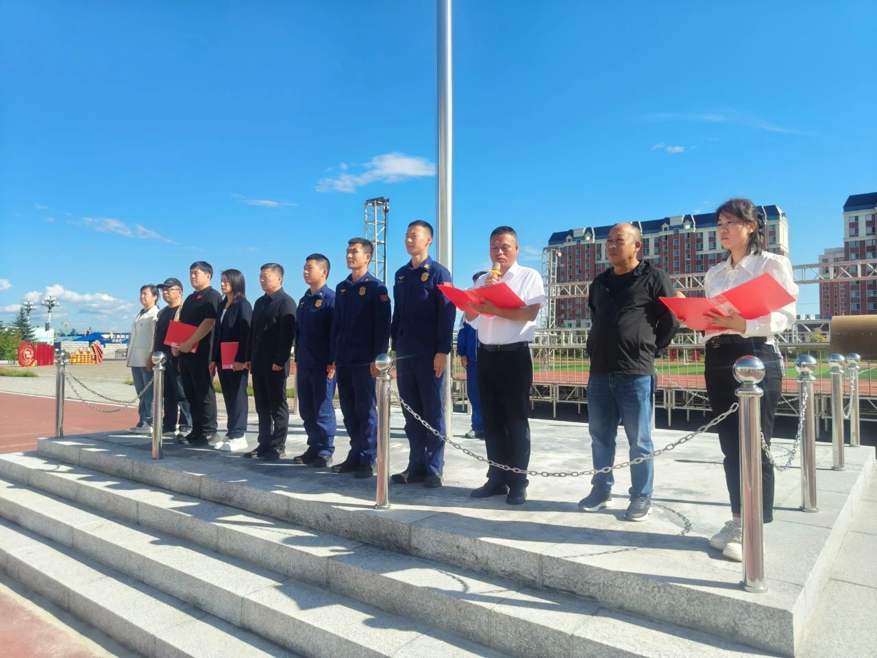 漠河市育才学校副校长徐长春强调了军训安全注意事项,他希望同学们严格遵守纪律、勇于挑战自我、注意人身安全,并表示学校已全面做好后勤保障工作,全力支持军训顺利开展。