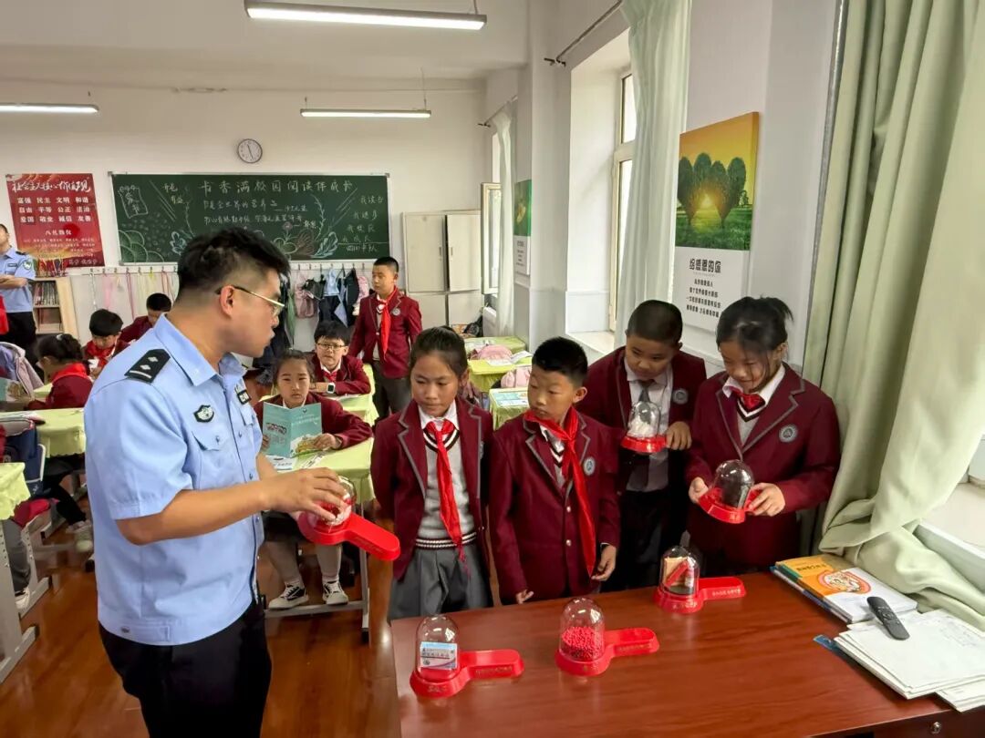 为了让同学们对毒品有更直观的认识,民警现场展示了各类毒品仿真模型,详细讲解它们的外观特征、对人体和社会的危害,以及成瘾机制。同学们好奇又认真地围聚在模型周围,仔细观察,不时提出疑问。在互动提问环节,同学们纷纷举手抢答,现场气氛热烈非凡。民警还针对同学们的回答进行补充和拓展,确保禁毒与国防知识在趣味互动中,真正被同学们理解和吸收。