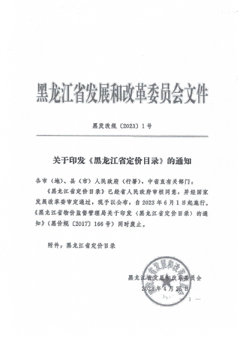 关于印发黑龙江省定价目录的通知